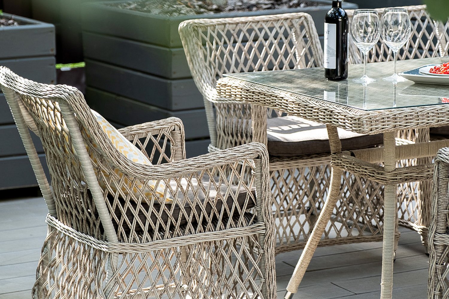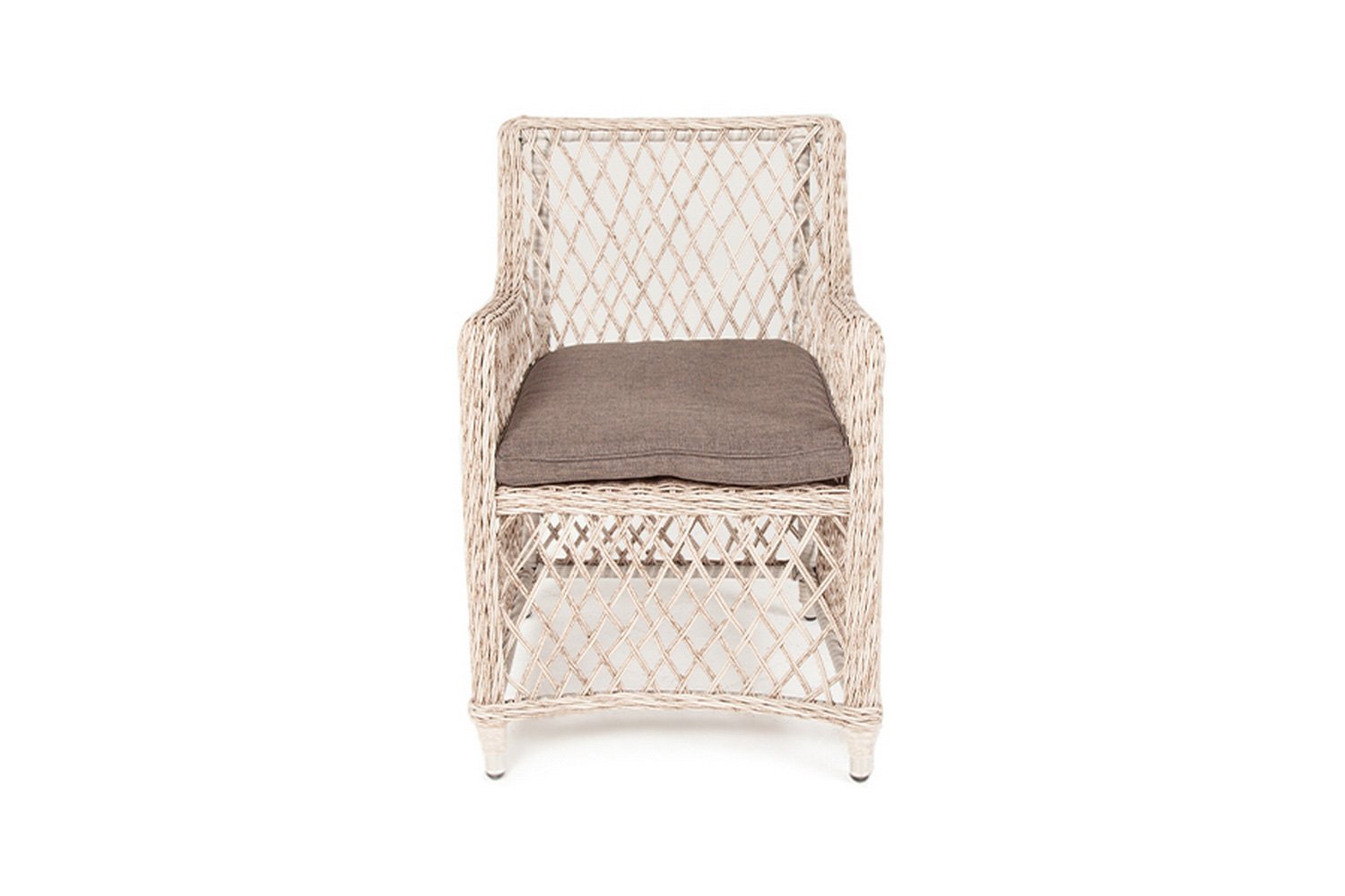 Кресло модели 4SiS Латте бежевого цвета с фото имеет габариты 55х84х68 см, и предназначено для использования на улице в любое время года, без убирания его в помещение. Для такого кресла требуется подходящая подушка по параметрам.