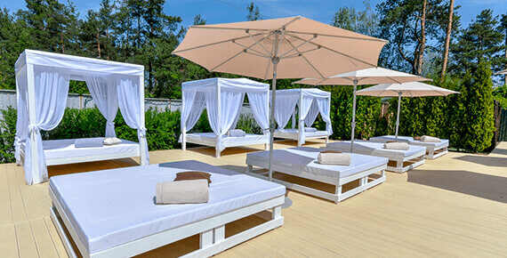 Текстиль является важным элементом обустройства бассейнов и пляжей, создавая комфорт во время отдыха.